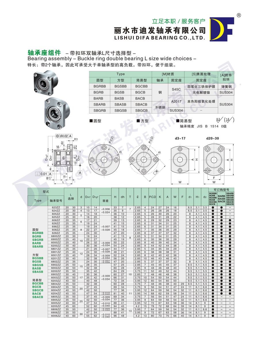 軸承座組件 帶扣環(huán)雙軸承尺寸選擇型