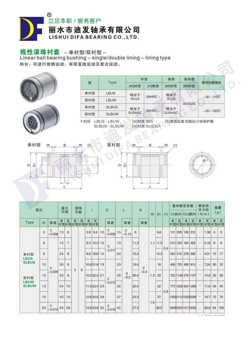 線性滾珠襯套 -單襯型/雙襯型