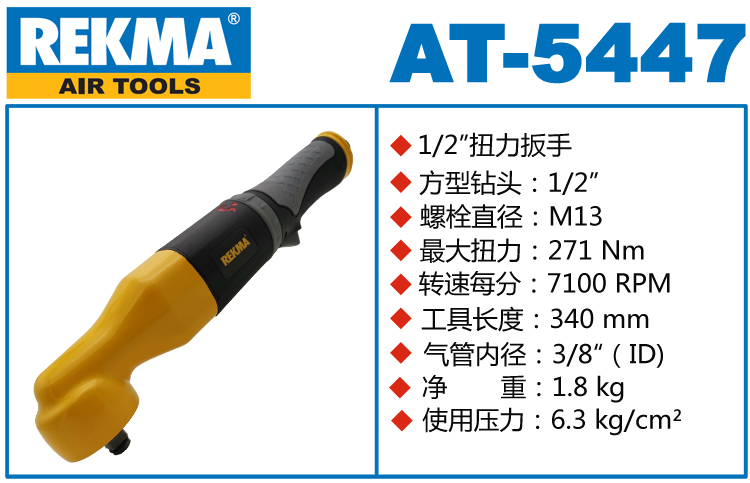 銳克馬REKMA AT-5447彎角氣動(dòng)扳手特點(diǎn):(塑鋼壓鑄外殼,重量輕、強(qiáng)度更高不變形,提高耐用度)