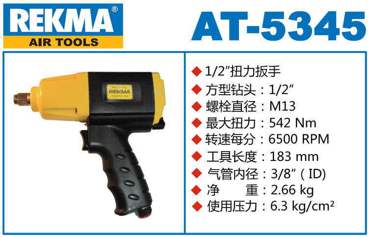 銳克馬REKMA AT-5345風動板手特點:(塑鋼外殼,強度更高不變形,提高耐用度)