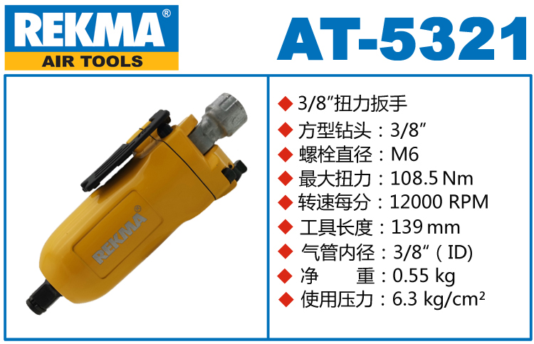 銳克馬REKMA AT-5321蝶形開關氣動扳手特點:(重力壓鑄外殼,強度更高不變形,提高耐用度)
