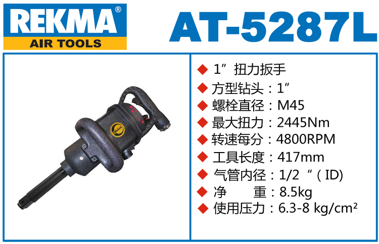 銳克馬REKMA AT-5287L氣動風(fēng)炮特點(diǎn):(重力壓鑄外殼,強(qiáng)度更高不變形,提高耐用度)