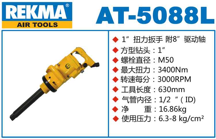 銳克馬REKMA AT-5088L工業(yè)氣動大風炮特點:(重力壓鑄外殼,強度更高不變形,提高耐用度)