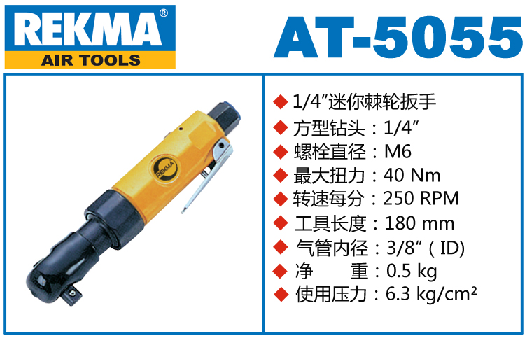 銳克馬REKMA AT-5055迷你氣動(dòng)棘輪扳手特點(diǎn):(重力壓鑄外殼,強(qiáng)度更高不變形,提高耐用度)