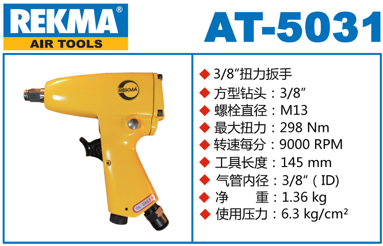 銳克馬REKMA AT-5031氣動扳手特點(diǎn):(重力壓鑄外殼,強(qiáng)度更高不變形,提高耐用度)