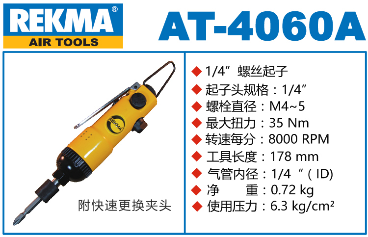 銳克馬REKMA AT-4060A氣動風(fēng)批特點: